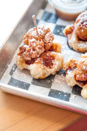 Even after our sugary sampling, my sweet tooth was still not satisfied, so we got ourselves one of their three ice cream waco’s to split, the Buttercup. Vanilla ice cream, crushed Reese’s peanut butter cups, and a chocolate drizzle inside of Smashed Waffles’ signature waffle tacos. It was...everything I wanted it to be and more. A creamy peanut buttery & chocolatey explosion, and thanks to the crispy waffle taco, it held together beautifully without turning to a soupy ice cream mess. With my sweet tooth properly taken care of, we wanted to move on to the savory side. We thought about getting one of their egg sandwiches, but something else caught my eye—Chicken Lil’s, mini waffles topped with chicken nuggets & syrup. This was my first time having chicken & waffles in the south mind you (and yes, these count). Savory & sweet, crispy & fluffy, these little guys were paradise in my mouth. I’m happy I don’t permanently live in Greenville, NC—I would definitely gain 500lbs—these were addicting!